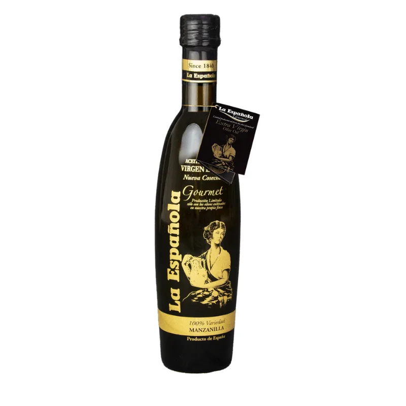In terms of origin, this oil is Andalusian and closely linked to Seville. The Manzanilla variety itself is identified as originating in Seville. La Española’s gourmet range is produced at its mill in La Roda de Andalucía, in the province of Seville.